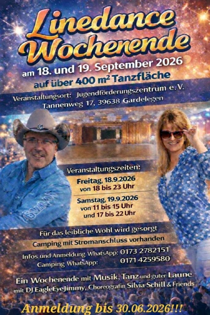 21 Jan. Linedance Weekend in Gardelegen mit Silvia Schill & DJ Jimmy Posted at 22:15h in Allgemein, Slider by Peter 0 Likes Share
