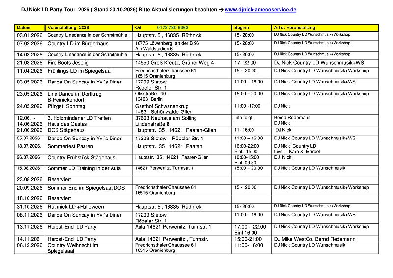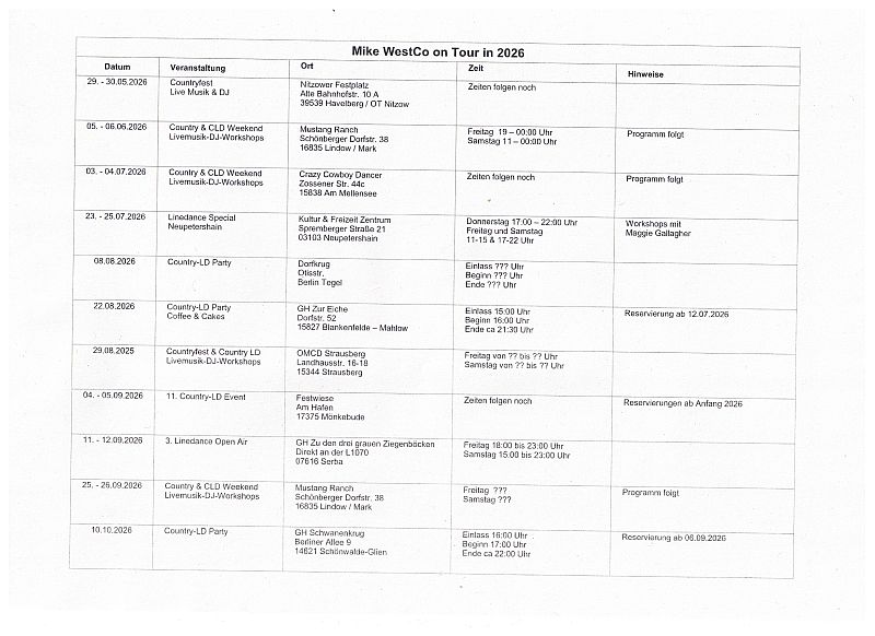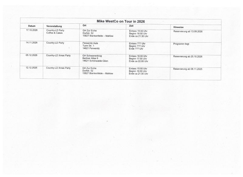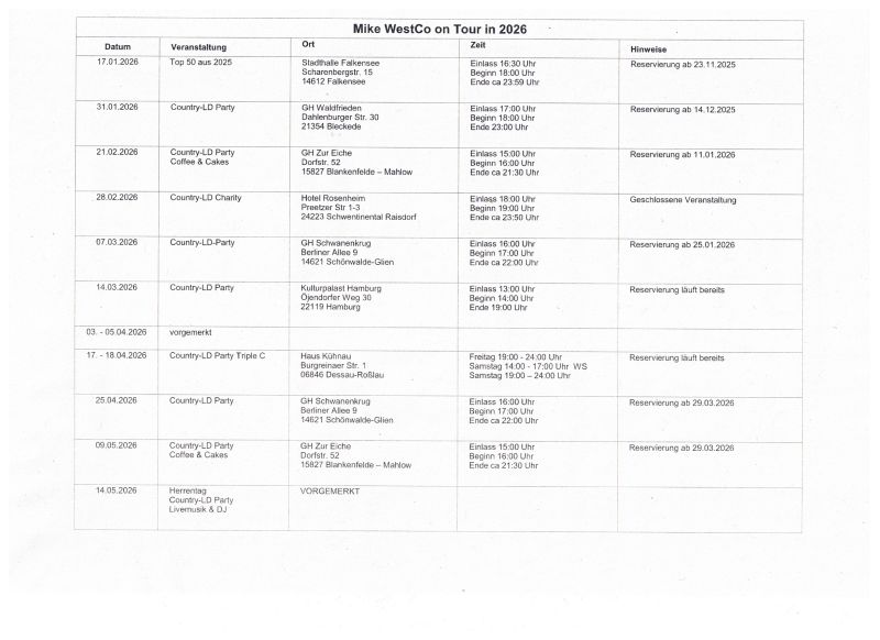 Termine DJ MikeWestCo 2026